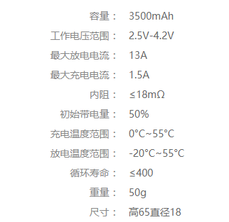 产品描述:18650/3.2V/3500mAh/13A电芯